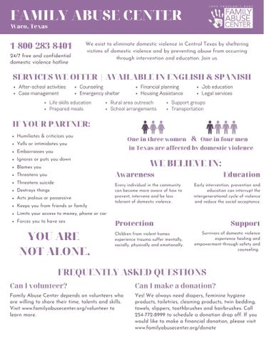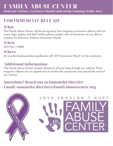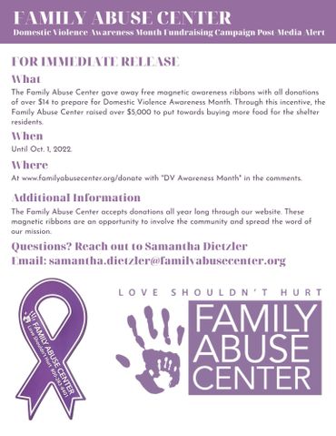 One in four people will face domestic violence in their lifetime. To represent this statistic, donors leading up to Domestic Violence Awareness Month that contribute $14 or more will receive a magnetic awareness ribbon.